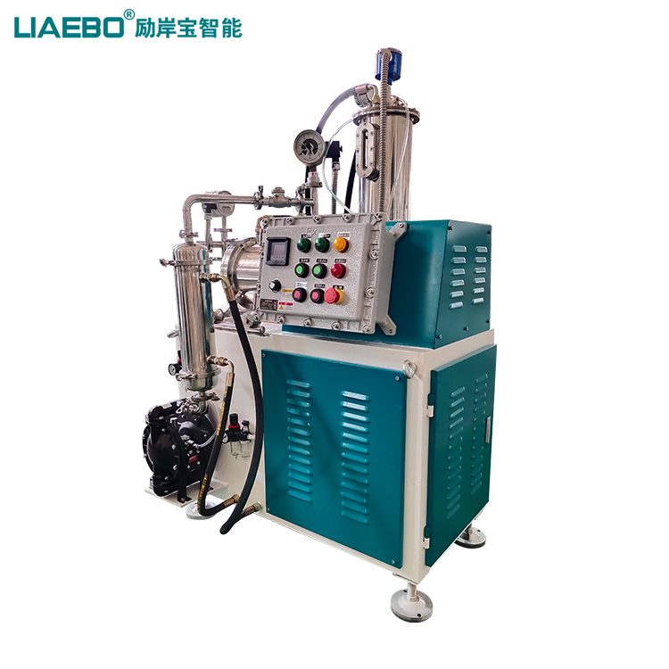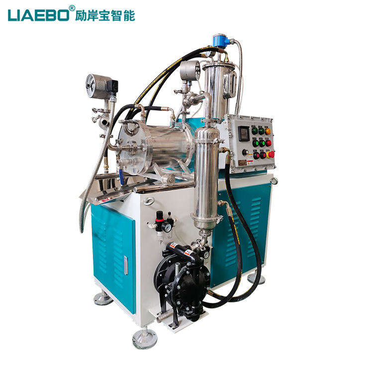 采用循環(huán)研磨工藝,環(huán)保節(jié)能、勞動強度小。配制好的原始漿料,經過第一遍粗略研磨后,泵入循環(huán)攪拌罐,經底部泵輸送進入納米研磨機;一邊經過研磨后送入循環(huán)罐,與未曾研磨過的物料通過攪拌機快速混亂,一邊又通過底部泵入砂磨機,周而復始直到達成研磨要求。一般而言,罐的容積是砂磨機流量的1/4。采用循環(huán)研磨工藝或多次研磨工藝能使產能提高,產品顆粒級配分布得以優(yōu)化。稍加一些控制功能,可保證產品的可復制性及節(jié)省成本。大尺寸轉子加上筒狀縫隙式分離器,使該型設備可使用不同材質小顆粒珠子。對于防金屬污染的物料,可采用陶瓷(碳氮化硅,氧化鋯)及聚氨酯結構材料。