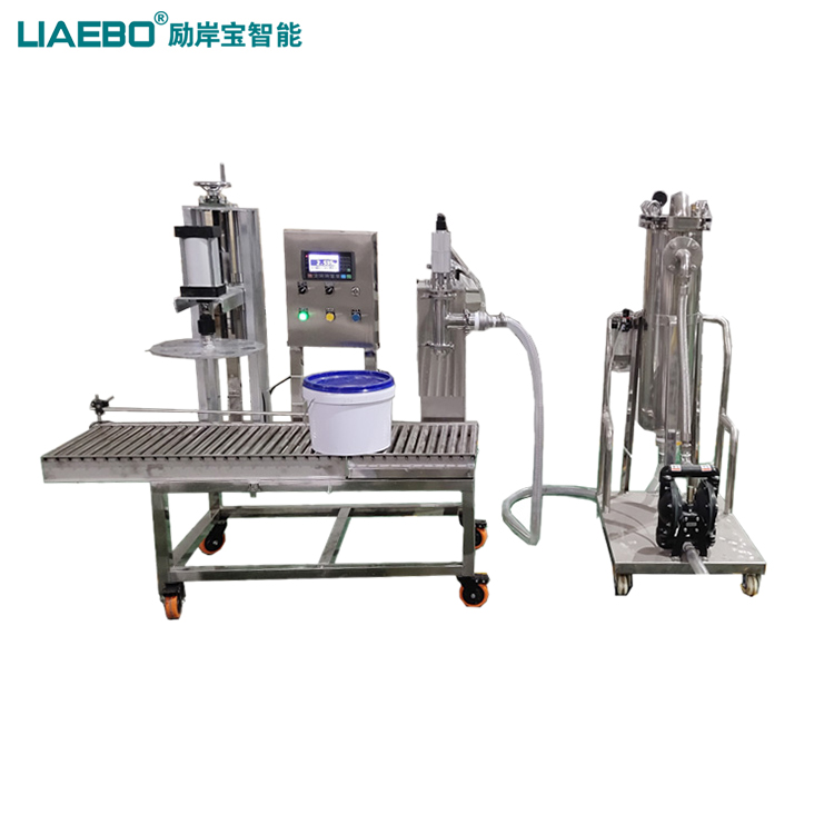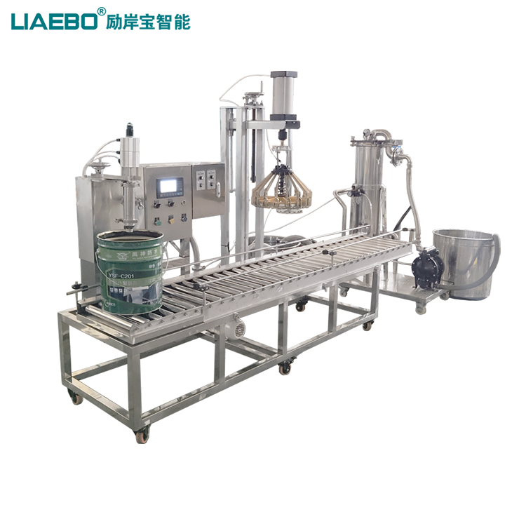 液體灌裝機是以重量方式精確地將大量的散裝液體物料分裝到各種容器、鐵桶或塑料桶中,用于 4L~30L 桶自動定量灌裝。廣泛應(yīng)用于化工、農(nóng)藥等與液體狀物料相關(guān)的行業(yè),適用在涂料、油漆、油墨、膠粘劑、固化劑、樹脂、染料、清洗劑、機油、甘油、潤滑油、食用油、香精、溶劑、助劑、食品添加劑、農(nóng)藥及其他危險性化學(xué)產(chǎn)品等產(chǎn)品中。單頭半自動灌裝機自動化控制儀表接收稱重傳感器給出的重量信號,單頭/大流量/小流量控制進料閥,實現(xiàn)自動灌裝的目的:并配有半自動輸送輥道及壓蓋/夾蓋/裝置,完成物料灌裝與密封過程。主要用于馬口鐵桶、塑料桶的定量自動灌裝,也適用于食品、制藥、化工等多種行業(yè)液體類物料的自動定灌裝。
