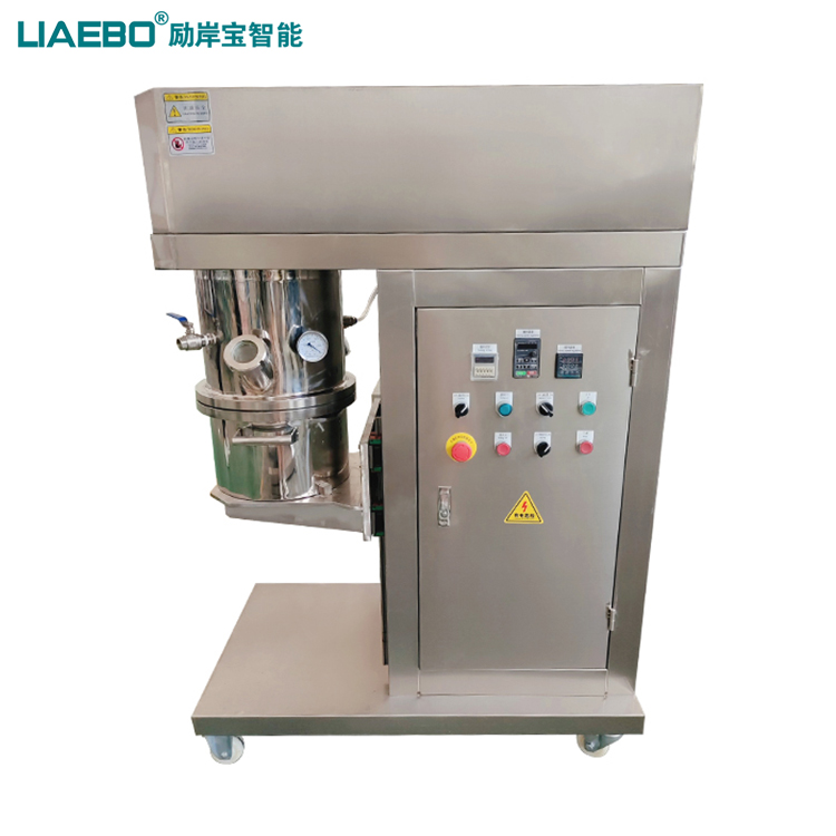 雙行星真空攪拌機是一種高性能、高效率、易清洗維護的新型攪拌設(shè)備。主要由減速電機、行星架、攪拌器、分散器、刮壁器、料桶、升降系統(tǒng)、液壓擠出系統(tǒng)以及機架等構(gòu)成,設(shè)備的雙組攪拌器運行時自轉(zhuǎn)同時繞著軸心進(jìn)行公轉(zhuǎn),攪拌器形式根據(jù)物料粘度和工藝特性選配,常見的包括漿葉式、麻花式、爪式、框式等,具備良好的混合、反應(yīng)、捏合、溶解的作用;高速分散器由多層具備極高線速度的鋸齒狀分散盤組成,它同樣在高速自轉(zhuǎn)的同時繞著軸心進(jìn)行公轉(zhuǎn),能夠?qū)⒎哿?助劑)快速的分散到漿料里,具備很強的分散作用。設(shè)備配有一組獨立刮刀,對桶壁進(jìn)行不斷的刮拭,同時攪拌漿葉可以增加刮片,對料桶底部進(jìn)行刮拭,避免攪拌死角,確保產(chǎn)品的穩(wěn)定性;雙行星真空攪拌機傳動采用行星齒輪傳動,有較大的輸出扭矩,適用干高溫、高固,高粘度等高難度工況;該設(shè)備采用密閉式設(shè)計,可以配合真空系統(tǒng),實現(xiàn)真空攪拌,攪拌桶也可設(shè)計帶夾套加熱,配合模溫機,實現(xiàn)恒溫攪拌功能,是市場上針對高粘度物料的分散、攪拌設(shè)備。