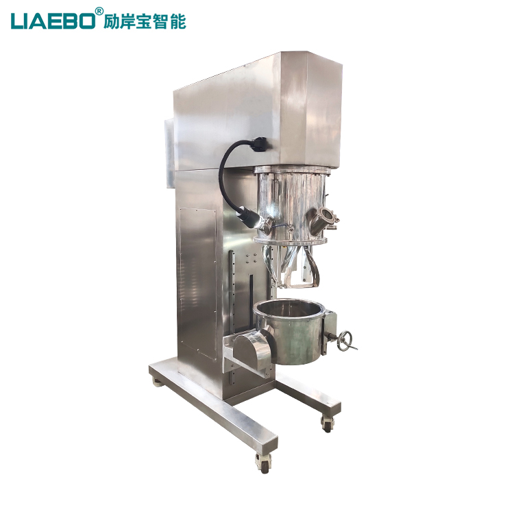 雙行星真空攪拌機是一種高性能、高效率、易清洗維護(hù)的新型攪拌設(shè)備。主要由減速電機、行星架、攪拌器、分散器、刮壁器、料桶、升降系統(tǒng)、液壓擠出系統(tǒng)以及機架等構(gòu)成,設(shè)備的雙組攪拌器運行時自轉(zhuǎn)同時繞著軸心進(jìn)行公轉(zhuǎn),攪拌器形式根據(jù)物料粘度和工藝特性選配,常見的包括漿葉式、麻花式、爪式、框式等,具備良好的混合、反應(yīng)、捏合、溶解的作用;高速分散器由多層具備極高線速度的鋸齒狀分散盤組成,它同樣在高速自轉(zhuǎn)的同時繞著軸心進(jìn)行公轉(zhuǎn),能夠?qū)⒎哿?助劑)快速的分散到漿料里,具備很強的分散作用。設(shè)備配有一組獨立刮刀,對桶壁進(jìn)行不斷的刮拭,同時攪拌漿葉可以增加刮片,對料桶底部進(jìn)行刮拭,避免攪拌死角,確保產(chǎn)品的穩(wěn)定性;雙行星真空攪拌機傳動采用行星齒輪傳動,有較大的輸出扭矩,適用干高溫、高固,高粘度等高難度工況;該設(shè)備采用密閉式設(shè)計,可以配合真空系統(tǒng),實現(xiàn)真空攪拌,攪拌桶也可設(shè)計帶夾套加熱,配合模溫機,實現(xiàn)恒溫攪拌功能,是市場上針對高粘度物料的分散、攪拌設(shè)備。