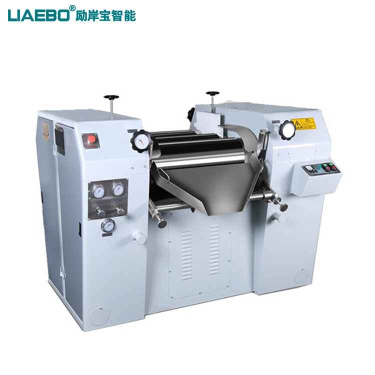 該機型*大優(yōu)點是采用變頻調(diào)速,并加裝有機械(或液壓)間隙的調(diào)整裝置,在運行中可不脫開輥筒的情況下任意調(diào)整間隙,使其達到一個**的狀態(tài)。以便加工各種高、中、低粘度的產(chǎn)品,產(chǎn)能是普通機的4倍左右。工作時間快、慢輥調(diào)節(jié)到適當位置,啟動機器,然后將需要研磨的漿料加入中輥與慢輥之間銅刀處,漿料經(jīng)過中、慢輥表面擠軋后,由中輥帶給快輥,再由緊貼表面的出料刮刀予以刮下,通過裝有欄板的刀板,流入盛料筒,由此構成整個研磨的過程。