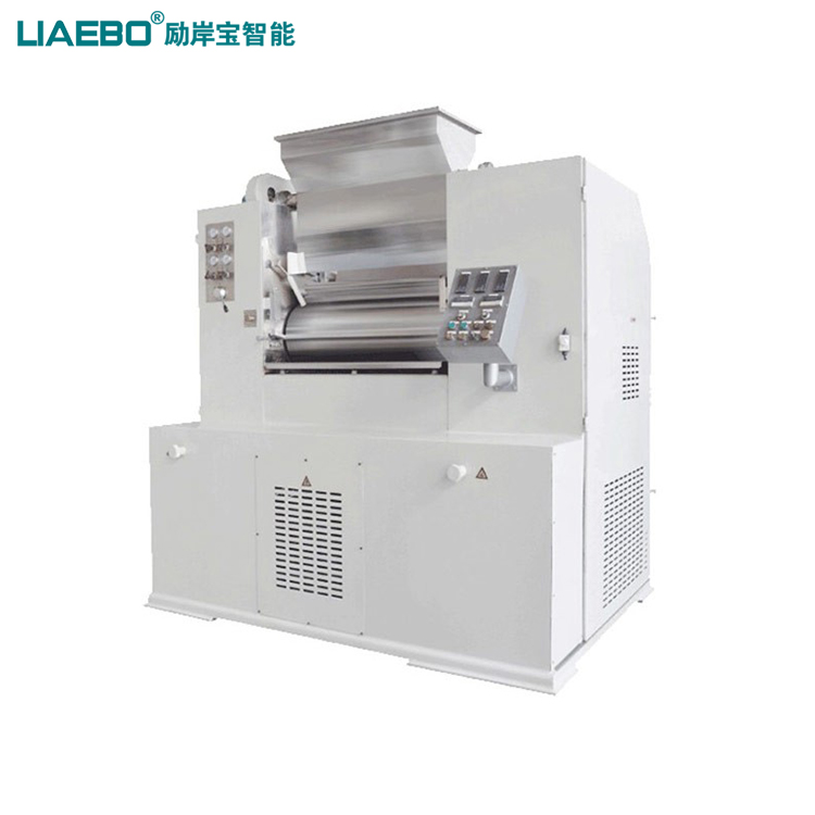 平液壓三輥研磨機的輥筒采用獨特的合金材料澆鑄,具有極高的硬度。該系列采用比例閥調(diào)節(jié)輥筒間的壓力與間距,提高了整機的穩(wěn)定性,增加了設(shè)備的使用壽命。該設(shè)備可以采用西門子PLC自動控制輥筒壓力、轉(zhuǎn)速與溫度(選項)。工作時間快、慢輥調(diào)節(jié)到適當(dāng)位置,啟動機器,然后將需要研磨的漿料加入中輥與慢輥之間銅刀處,漿料經(jīng)過中、慢輥表面擠軋后,由中輥帶給快輥,再由緊貼表面的出料刮刀予以刮下,通過裝有欄板的刀板,流入盛料筒,由此構(gòu)成整個研磨的過程。